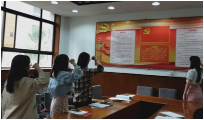 会议讨论郭芷彤、林亭君两位同志由发展对象转预备党员的事宜。两位同志逐一发言,向大会汇报了自己对党的认识、入党动机、本人的履历家庭和主要社会关系的情况。汇报完毕之后,由两位同志的入党介绍人介绍有关情况,并对两位同志能否入党发表意见。支委会汇报了对郭芷彤、林亭君两位同志的审查情况,与会党员采用无记名投票的形式表决通过了两位同志发展为预备党员,党支部书记阿尔曼·艾林的带领新发展党员面向党旗庄严宣誓。
