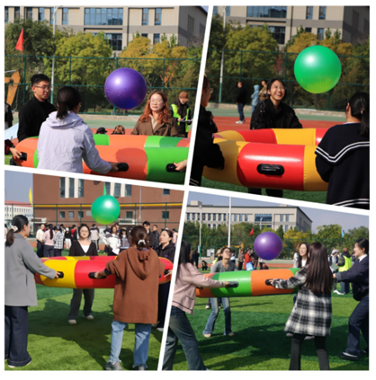 本次运动会设置了“众星捧月”“财源滚滚”“充气网球拍”“袋鼠向前冲”“旱地龙舟”“珠行万里”“拔河”七个团体比赛项目。这些项目不仅是我校研究生课业之余的活力调剂,更是打破学院壁垒、促进校园文化融合的实践课堂,有力地实现了思维与体能的碰撞、友谊与默契的升华。