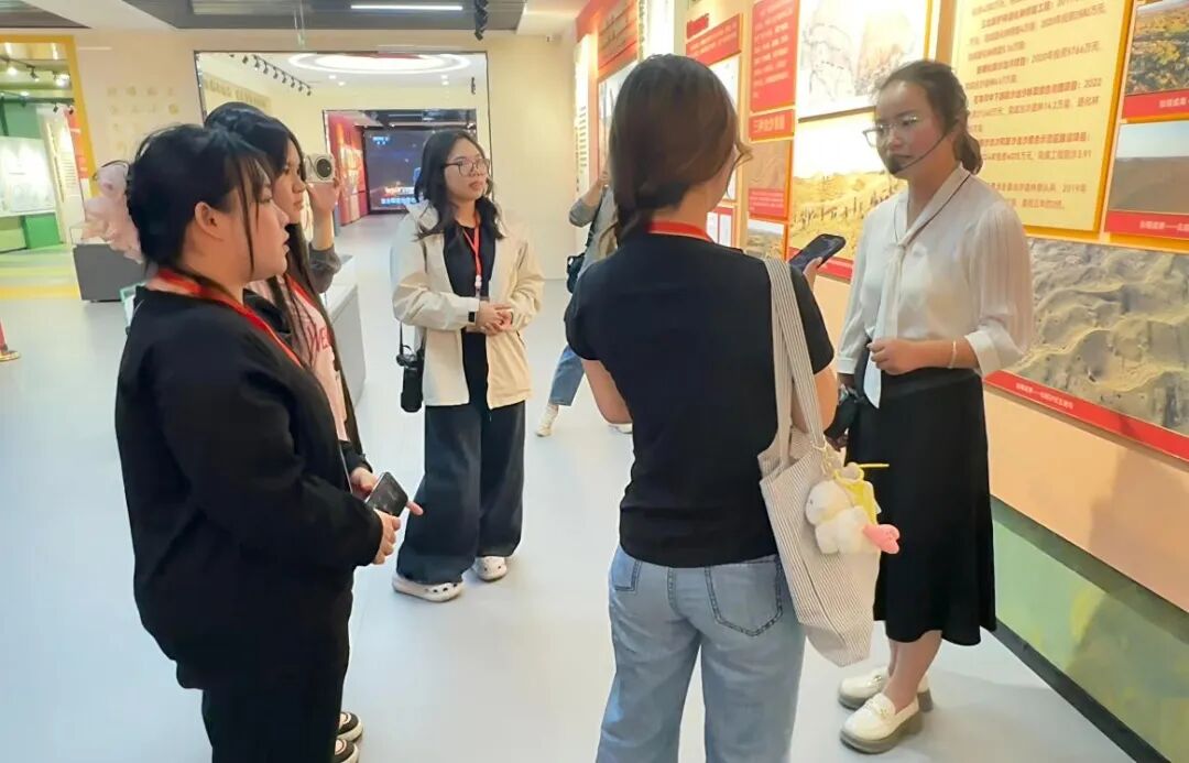 “治沙后,村里的年轻人回来了吗?”当讲解员讲到“以前年轻人都走了,现在回来种梭梭、开民宿”时,学生们将视频画面转换到一片郁郁葱葱的治沙林场和吸引研学旅游及国际考察带动餐饮、民宿等服务业发展的八步沙“两山”实践基地——这正是“八步沙精神与乡村振兴”最生动的注脚。
