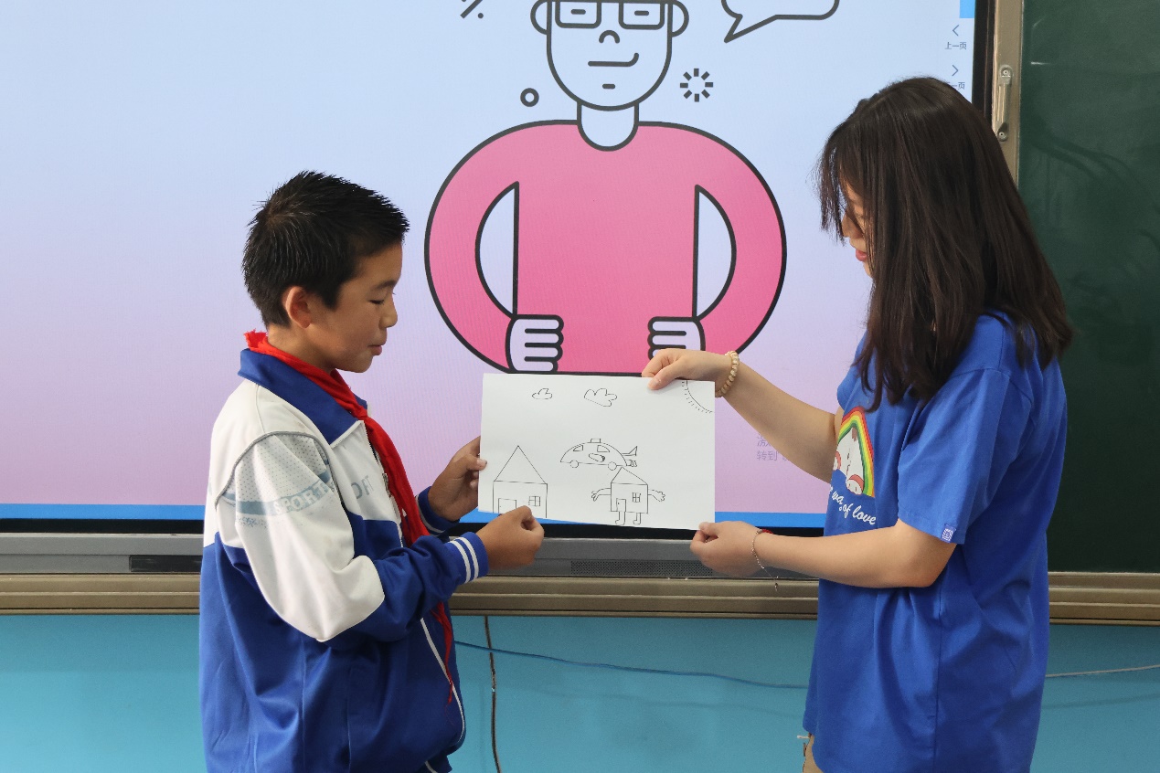 “你们心中的未来生活是什么样的?”在“放飞想象”课堂上,志愿者抛出的问题瞬间点燃了孩子们的热情。有的孩子说“想坐太空飞船去月亮上上学”,有的则期待“马路上的车能在云里开”。围绕这一主题,志愿者们引导孩子们展开“未来科技小讨论”——会飞的书包能跟着主人跑、会“说话”的垃圾分类箱能教大家环保知识、会开花的路灯白天储能夜晚绽放……一个个奇思妙想在课堂上碰撞,孩子们在天马行空的交流中,不仅锻炼了普通话表达能力,更种下了对科技的好奇种子。
