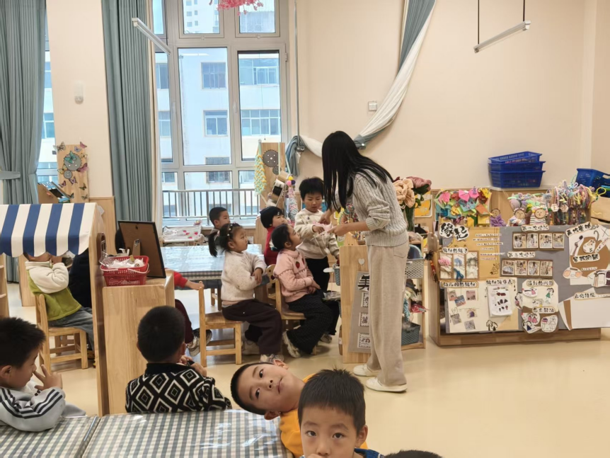 在《图形变变变》中,孩子们用各种图形拼出小鱼、房子。他们边做边想,最后用语言描述作品,让想象力通过双手和话语共同绽放。《小树的四季》带着孩子们跟随一棵小树走过春夏秋冬。在认识季节变化、自然规律的同时,那些描述气候、景物和生命的词语,也自然而然地成为了他们语言的一部分。几乎每个活动都有小组合作和集体游戏。让小朋友们在探索自然世界,艺术世界的过程中,不断提升自己的普通话水平。