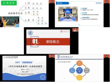 西北大学团队将体验式教学理念运用得淋漓尽致,同时以精彩的自制短视频为最大亮点,既能控制语言节奏、难度、重点,又富有感染力。西北农林科技大学团队的四位老师都有着丰富的汉语作为第二语言教学及中国文化传播经验,其教授课程轻松愉快,体现教师主导、学生主体的理念。西北师范大学团队将互动与情景相结合,文化与语言相结合,充分利用新多媒体资源和丰富多样的教学手段,调动学生学习汉语的积极性,同时突破地域限制,让学生真正了解中国,爱上中国。新疆财经大学团队扎根本土,深耕一线,中方掌舵,本土担纲,以实战求实效,展现海外孔子学院中文教学新理念、新技能、新实践。新疆大学团队以任务型教学法为教学理念,完美贯彻“在做中学”,是对于疫情时代线上写作教学的新模式和新理念的成功探索。