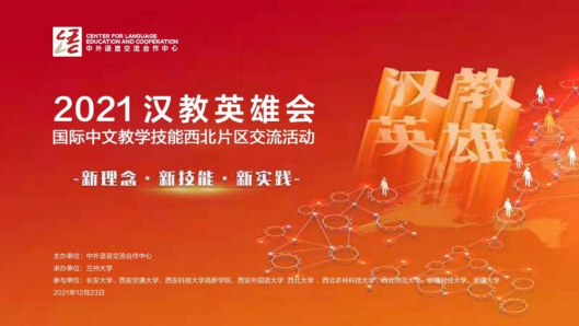 2021“汉教英雄会”国际中文教学技能交流活动西北片区线上交流活动于2021年12月23日成功举办。此次活动由教育部中外语言交流合作中心主办、兰州大学承办,共吸引西北片区10余所高校团队,近150余名中外师生参与本次交流活动。
