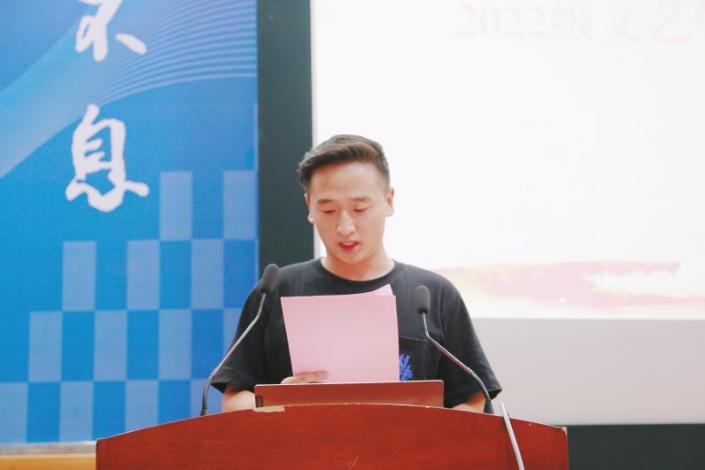 学院新老生代表分别进行了发言。2020级汉语言文学专业本科生魏畅结合自己的学习与思考,鼓励同学们珍惜大学时光,明确自己发展的方向,在永恒中体验瞬息的愉悦,在瞬息间求得永恒的真理,不负青春,不负时代。2023级汉语言文学专业本科生潘佳怡在发言中表示,身为兰大学子,将以远大的志向海纳百川,以微小的心灵洞察万物,成为独树一帜的兰大人,成为国家需要的人才。