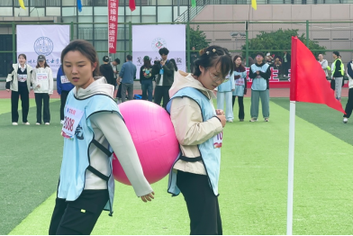 多姿多彩的趣味项目是本次运动会的特色,在“旱地龙舟”“同舟共济”“势不可挡”“袋鼠运瓜”“车轮滚滚”“紧锣密鼓”等比赛项目中,参赛教师和学生同心协力,并肩向前,师生情谊在一声声呼喊、一句句鼓励中愈发浓厚,全体文院人的心也靠的更近。