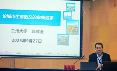 兰州大学郭茂全教授聚焦城市文学,以《论城市生态散文的审美追求》为题作了报告。他首先梳理城市生态散文研究的背景,随后细致界定“城市生态系统”“生态散文”“城市生态散文”等概念,城市生态散文不仅表现人们的生态经验与意识,更能滋养城市人的心灵。结合约·瑟帕玛、阿诺德·伯林特等中外理论家的观点,郭茂全提出了城市生态散文的四大审美追求:书写城市空间的"自然美"、传达城市共同体的"生命美"、探寻城市的"和谐美"、表达栖居城市的"家园感"。他还呼吁创作者需从“走向荒野”转向“回归城市”,与城市设计者、自然万物对话,以生态话语展现城市生态之美。