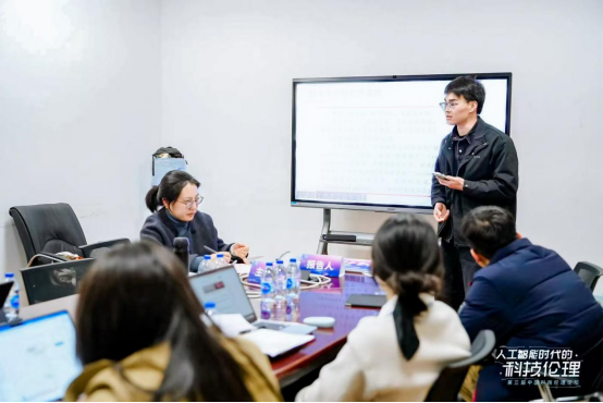 王程入选“艺术与叙事中的人工智能伦理”分论坛,并在学生论坛中汇报了以西蒙东、许煜技术哲学为参照,探讨人工智能美学建构路径的初步思考,同时就人工智能介入文艺创作后所引发的创作身份与技术伦理责任等问题作了分析。论坛期间,参会师生围绕人工智能文艺生产的机制、人工智能文艺作品的本质、人工智能文艺创作的伦理困境以及中国科幻作品中的人机伦理等话题展开讨论。王程认真聆听发言,积极参与讨论,虚心请教疑难问题。