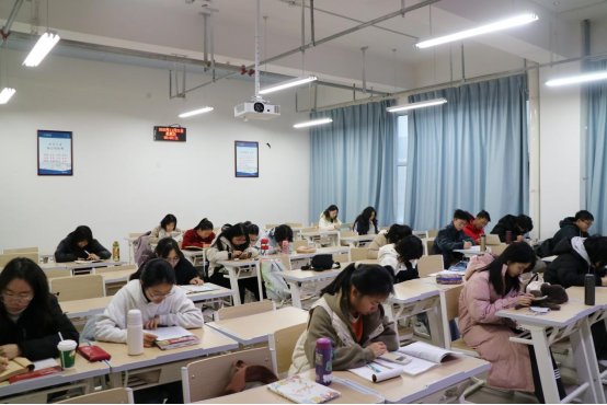 尽管近期天气寒冷,早起面临更多挑战,但戏剧影视文学班的同学们依然克服困难,准时出现在教室。早晨七点五十分,同学们陆陆续续前来教室进行早读。大家迅速进入状态,拿出英语词汇书、历年真题或听力材料,专注于四六级考试的备考复习中,整个教室弥漫着浓厚而专注的学习气息。