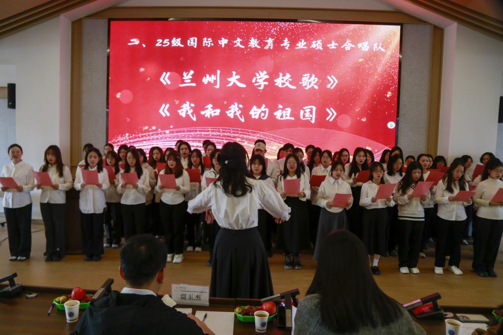 11月23日,2025年文学院研究生“一二·九”歌咏比赛在榆中校区宏远楼B422报告厅开展,文学院研究生用嘹亮的歌声和昂扬的面貌抒发爱国热情、践行青年担当。马克思主义学院团委书记贾玉杰,艺术学院团委书记余秀丽、团委副书记张崇峰出席本次合唱比赛并担任评委。