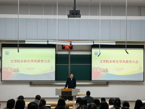 春潮涌动启新程,龙马奋蹄向未来。2026年3月12日下午四点半,兰州大学文学院2025级本科生年级大会在兰州大学榆中校区秦岭堂B110成功召开。文学院院长郭茂全,党委副书记刘克全,辅导员关程睿及2025级全体同学齐聚一堂,为新学期学习生活凝心聚力,谋篇启航。